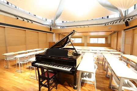 「生徒のコミュニケーション力を高めたい」という狙いのもと、エントランス広場、地下1階のコリドー、各フロアにラウンジ、ウッドデッキテラスなどを作りました。教室やカフェ、図書室など学校として必要な施設だけでなく、生徒同士が自然に集まることができる自由な空間をいたるところに作りました。もちろん、同級生との交流だけでなく、先生と生徒、先輩と後輩、中学生と高校生など、いろいろな形でのコミュニケーションが可能です。また、天井は教室が3.5m、地下1階のコリドーが5mと〝規格外〟な高さで、校舎に入れば一目瞭然。開放感あふれる空間が広がっています。