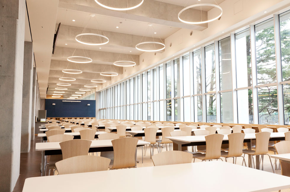 明るく開放感のあるカフェテリア