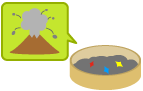 火山噴火による火山灰には、マグマからできた結晶(鉱物)がかくされています。 数十万年前の大噴火による火山灰を使って、宝石のようにきれいな鉱物探しをしましょう。双眼実体顕微鏡を使用します。