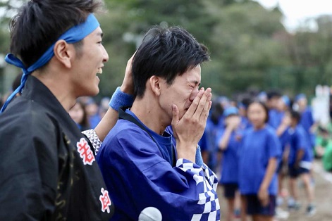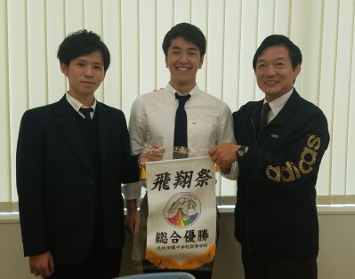 いよいよ学校行事が盛り沢山の2学期が始まりました。先日、その第一弾となる第1回飛翔祭が開催されました。これは、昨年度までの中学校運動会、高校体育祭を1つにしたもので、新たに『飛翔祭』と銘打ち、中高生6学年7クラスが、縦割り7色のチームに分かれ、熱戦を繰り広げました。今回は、その実行委員長S君と優勝したブルーチームの団長であるK君に感想を聞いてみました。