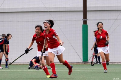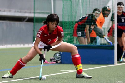 試合開始早々、最初にペナルティー・コーナー(PC)※を取って、先取点を奪ったよね。これで、勢いがついたのかな? ※守備側が5名に制限され、得点チャンスとなるホッケーの特徴的なプレイ |