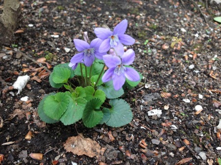 タチツボスミレが可憐な花を付けています。キャンパス内のいろいろな所で春の訪れを感じられる頃、また新学期が始まります。