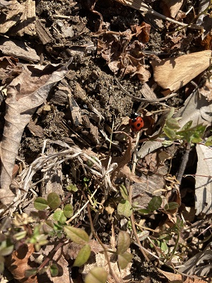 ナナホシテントウが冬眠から覚め、動き回っています。