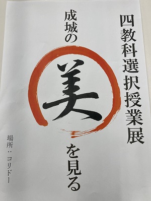 コリドーでは中3の4教科選択授業展が行われています。1月から2月の週4時間、自分たちの好きな分野でじっくり作品制作に取り組んだ成果が披露されています。日本画、油絵、陶芸、ステッチ、書道など、幅広い分野の作品を見ていると、生徒ひとりひとりが豊かでユニークな感性を持っていることに本当に驚きます。