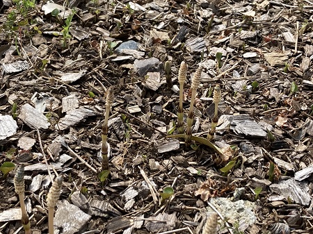 さて、今日は朝方雨が少し降りましたが、その後晴れて気温がぐんぐん上がり、初夏の陽気となりました。これまでじっと耐えていた木々の新芽もはっきり見えるようになってきました。この季節、100年の森を歩く時には、足元に注意しながらそっと歩かないといけません。