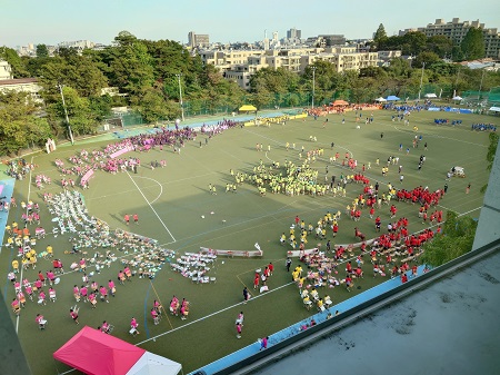 成城学園中高では秋に飛翔祭と呼ばれる体育祭がある。中高6学年を7色の縦割りにしてチームを決め、色別に競い合う。今年は「オレンジ」が僅差で「レッド」を破り、総合優勝を果たした。