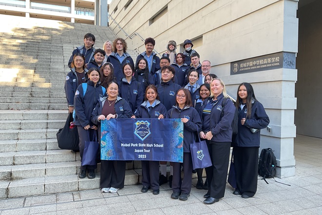 オーストラリアMabel Park State High Schoolの生徒と先生が中学校高等学校を一日訪問
