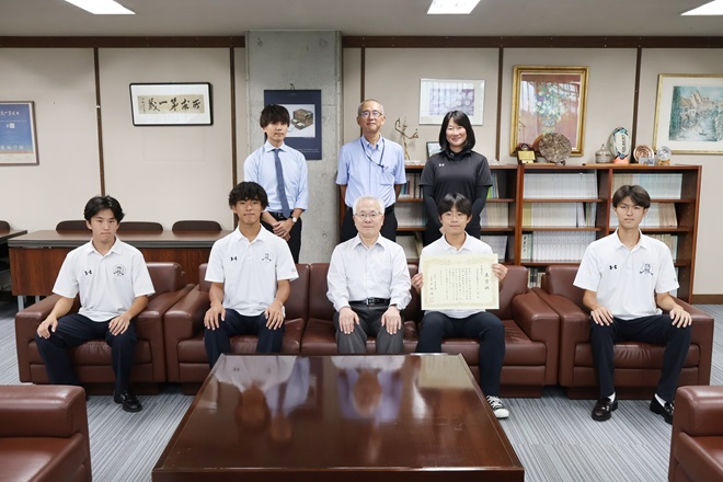 高校男子ホッケー部に学園長賞が授与されました