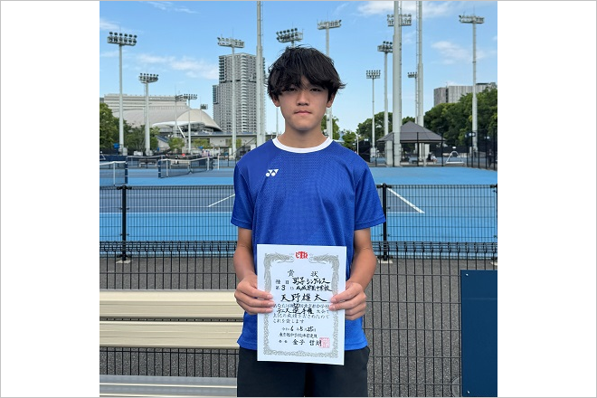 中学男子テニス部 天野雄太君 東京都大会第3位 関東大会出場決定