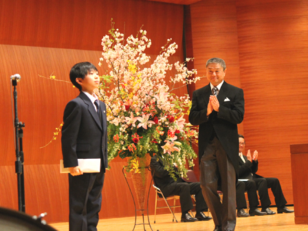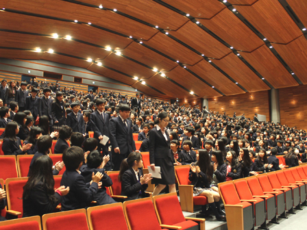 立派な新入生代表の答辞に石井校長が拍手