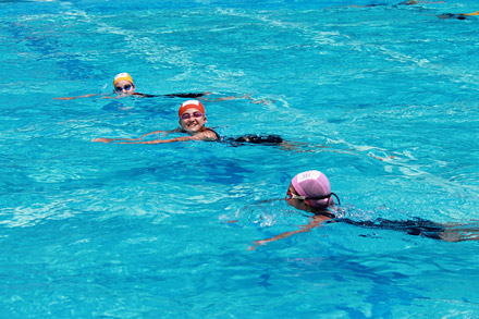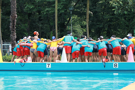 お互いのペースはどうか、列はそろっているか、顔を見合わせたり、声を掛け合いながら泳ぐ。この声掛けで1つのチームとなり、不思議と力が湧いてくる。