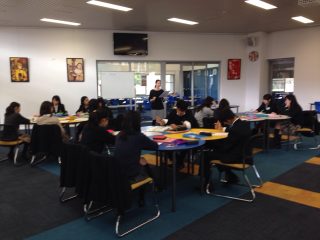 最初の週末を終え、現地の私立校での授業が始まりました。午前中は英会話、午後は在校生と一緒に授業を受けました。最初は緊張していた成城生も、次第に慣れてプログラムに取り組みました。教室の雰囲気はちょっと日本と違うかな?