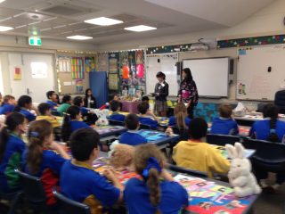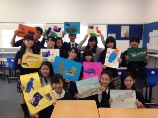 美術の時間には、オーストラリアの国旗や動物などをモチーフに、みんな個性的な絵を描きました。