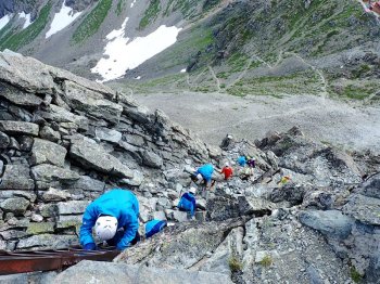 経験豊富や先生やガイドの方と一緒に、高山植物を見たりしながら、頂上に向かって一歩一歩進んでいきました。急な岩道を登っていると、「自分の足に自分の命が掛かっている」と実感することも。だからこそ、苦しさを乗り越えて見た景色はきっと忘れられないものになったことでしょう。天候により、残念ながら頂上まで辿り着くことができない班もありましたが、大きな怪我もなく、無事全班が行程を終えることができました。