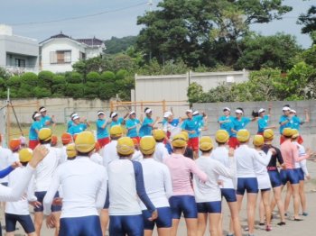 また、今年は、海の学校伝統の遠泳が復活。半世紀以上続く海の学校では遠泳を行うのが恒例となっていましたが、東日本大震災を機に実施を見送っていました。しかし今年は富浦の海が待っていてくれたかのように空・海ともコンディションが良く、安全性には最大限の配慮をした上で、遠泳を実施。海の学校の前に行われた学園大プールでの水泳記録会で1500m、2000mを完泳した生徒たちが、約40分間の遠泳に臨みました。中学生、サポートするライフセービングクラブの高校生、教員にとってもこれは大きな「挑戦」。この挑戦を果した感動は、ひとしおでした。