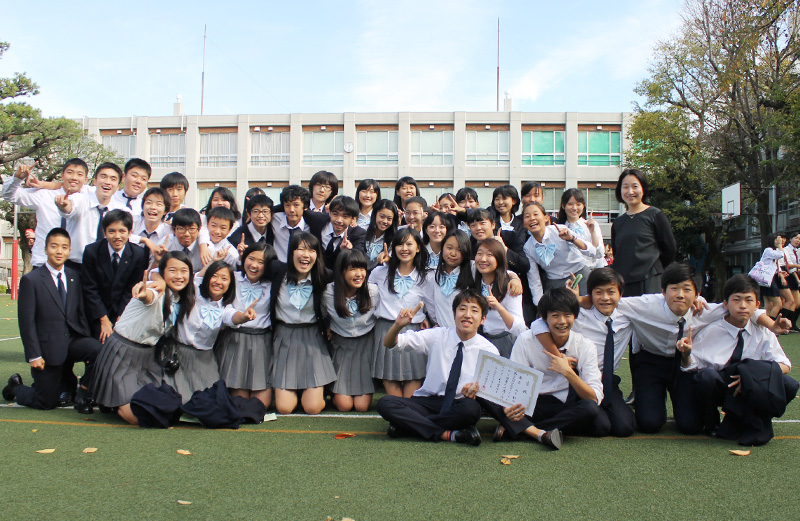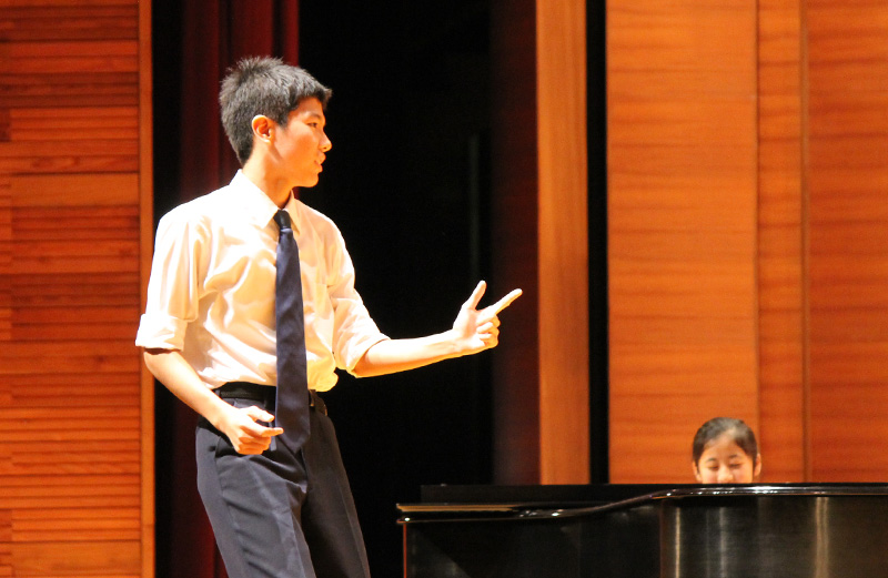 成城学園中学校の合唱コンクールは本気の「戦い」です。各クラスで発表曲を決め、曲のイメージをつくり、歌のハーモニーとパフォーマンスを考え、5人の審査員の先生による厳しい審査を受けます。コンクールが近づくと、朝、昼、放課後と練習する生徒たちの歌声があちこちから聞こえ、「○○組の歌がすごいらしい」なんて偵察合戦もあったりします。「ここは音楽学校か?」と言う人もいるくらい、金賞を目指してみんなが真剣に取り組む行事です。