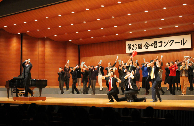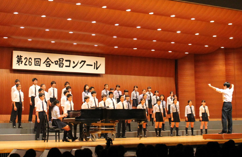 初めての合唱コンクール参加となる1年生全員でミュージカル「美女と野獣」の歌を歌ってスタート。全12クラスがそれぞれ練習してきた歌を、心を込めて歌いました。石井校長が「合唱は1人ではできない」と言うように、指揮者と伴奏者も含めてクラスが一体となり一曲の音楽を奏でる姿はとても感動的でした。合唱コンクールを通じて、クラスの団結力はより一層深いものになりました。