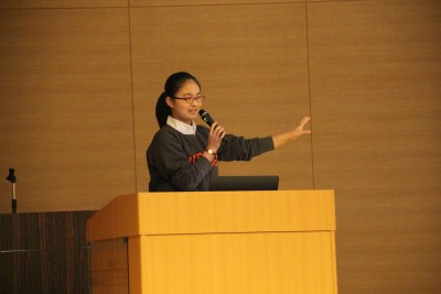 後輩たちに語りかける高校生