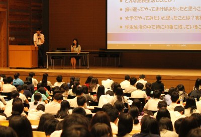 キャリアセンター主催による進路ガイダンスでは「先の自分をどれくらい想像していますか?」がテーマ。大学にはどのような学問があり、将来にどうつなげるかを考えたり、すでに来春の就職先が銀行に内定している成城大生から、どのような過程を経たかの体験談を聞くことができました。進学、留学、就職…この先にはさまざまな可能性があります。生徒たちは未来の自分と向き合う必要性を感じたのではないでしょうか?
