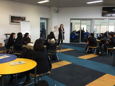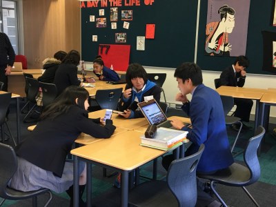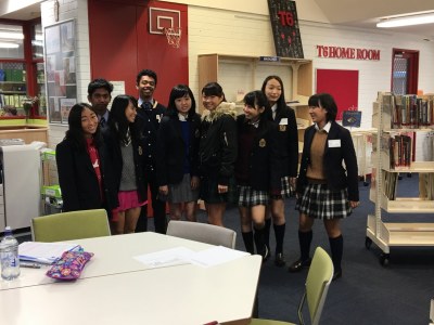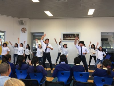 はじめに日本語クラスを選択している生徒たちが案内役となって、2グループに分かれた成城生たちにschool tourを実施してくれました。