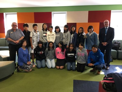 写真は学校到着時のものと、校長先生と日本語クラス担当の先生にお会いして一緒に撮ったもの。全員がバディの生徒とその親御さんに会い、それぞれのホストファミリー宅へ向かいました。明日から始まる新しい経験への期待に胸を膨らませています。