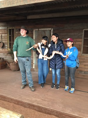 パース3日目、学校行事の関係でセントノーバート校の授業がないため、成城生は午前中、Caversham Wildlife Park 動物園で過ごしました。好天に恵まれ、カンガルーやウォンバット、コアラや、大蛇とも楽しく触れあい、Farm Showでは鞭振り体験にも参加しました。明日から3連休。生徒たちは、それぞれホストファミリーと過ごします。