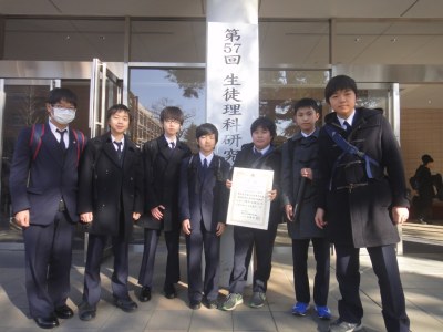 2月18日(日)、明星中学校・高等学校にて行われた第57回生徒理科研究発表会で、成城学園中学校科学部が研究発表を行いました。この研究発表会は、都内の私立中学校・高等学校の科学系クラブ・個人が参加するもので、今年は39件の口頭発表とこれ以外に68件の研究紀要による誌上発表が行われました。中学校科学部の発表題目は「様々な炭を用いての電子レンジによる孔雀石の還元」で、1年かけて研究してきた内容です。初めての研究発表でしたが、発表者の神谷航青君(中2楓組)が堂々と、パワーポイントによるスライドを使ってわかりやすい発表が行えました。