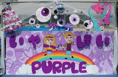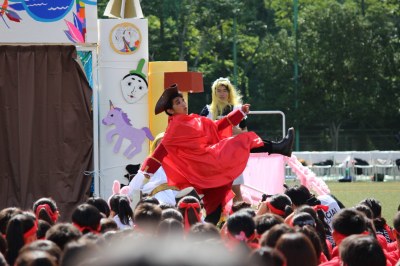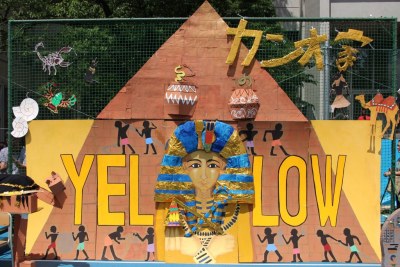 中高合同開催となって2年目となる体育祭「第2回飛翔祭」が6月5日(火)、第1グラウンドで行われました。中1~高3までを縦割りでレッド、ブルー、イエロー、グリーン、パープル、ピンク、オレンジの7グループに分け、優勝を競います。今年のテーマは「一発勝負 つなげ想い伝えろ愛」。オープニングセレモニーで、白雪姫ならぬヒロユキ姫(石井弘之校長)が登場。ユニークな仮装をした7人の応援団長が、ヒロユキ姫に口づけをして目覚めさせる権利を手にするめに優勝を誓う決意表明をしてスタートしました。城壁を乗り越える競技や、大縄跳び、棒奪いなどグループで協力して戦い、6つのリレー種目は最後まで目が離せない展開で大いに盛り上がりました。今年は競技中の応援も採点に加味されたため、生徒たちの応援もいつも以上に熱が入っていました。