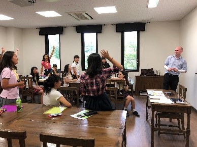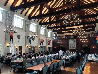 中学3年生は7月19日(木)~21日(土)、23日(月)~25日(水)の2班に分かれ、福島県にあるBritish Hillsで2泊3日を過ごしました。British Hillsは「パスポートのいらない英国」がキャッチフレーズの語学研修施設。中世英国を忠実に再現した施設で英国文化に触れることができ、英語漬けの毎日でした。滞在中には様々な体験型のレッスンを受けました。焼きたてを食べられるCooking Scones、自然散策路を歩きながら先生と会話するInterview Orienteering。生卵を落としても割れないような容器をグループで工夫して作るScience Challengeなど。先生方からは「成城学園の生徒はフレンドリーでコミュニケーション能力があるなあ!」と言われました。「自分の英語が通じた!」「英語で言われたことがわかった!」というたくさんの経験と自信がこれからの学習の励みになってくれればと思います。