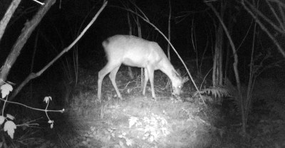 森で夜間に活動するシカの様子