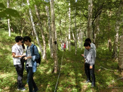 今年の夏の合宿で、科学部はふるさとの森を再び訪れました。今回の合宿では、長野県の林業総合センターの専門技術員の指導も得ながら、様々な調査を実施しました。活動の詳細は、県林務部のブログにまとめられています。