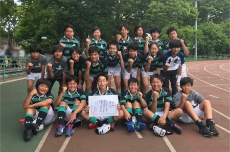 5月19日(日)成蹊学園にて行われた東京都中学校春季ラグビーフットボール大会Ⅰ部決勝トーナメントにおいて、3年生を中心とするAチームが大連合に33対7で勝利し、東京都第5位という戦績を収めました。また、2年生を中心とするBチームは、同大会Ⅱ部決勝トーナメントにおいて麻開駒連合に32対7で勝利し、東京都3位となりました。