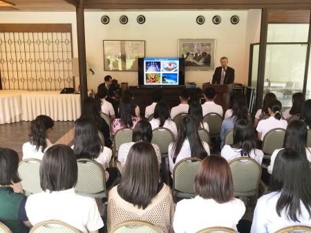 在マレーシア日本大使公邸にて、特任大使の宮川眞喜雄氏によるご講演、元なだ万調理長の神石久喜男氏をはじめとして、卒業生の竹中紘子さん、武内あゆみさんなどにもご登壇頂き、異国の地で働くことについて語っていただきました。