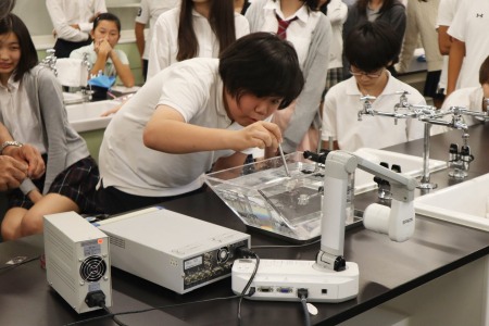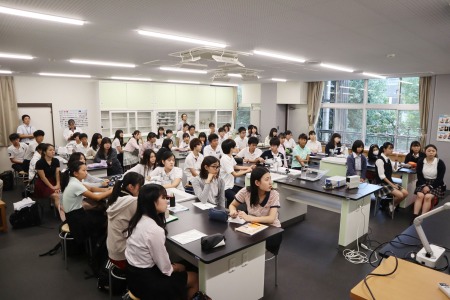 参加生徒は一様に真剣に聞き入っており、様々な形で医療への関わりができることを知るとても良い機会になったことと思います。解散後も実験室に残り、梅村教授に進路相談をしたり、追加実験をやらせていただいたりと、積極的な姿が多々見受けられました。
