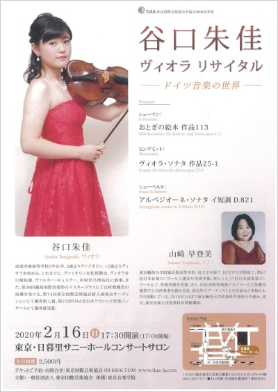 谷口朱佳さん(高校2年)が、東京国際芸術協会主催で「ヴィオラリサイタル —ドイツ音楽の世界—」を開催します。 谷口さんは、同協会の「第74回 東京国際芸術協会 新人演奏会オーディション」において優秀新人賞を、「第75回TIAA全日本クラシック音楽コンサート」において優秀賞を受賞しました。今後も活躍が期待されます。