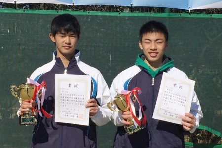 12月26日から行われている第43回東京都私立中学高等学校テニス選手権大会(個人の部)において、高等学校男子テニス部の3年川上・井上ペアが、総勢約800ペア参加のダブルストーナメントを勝ち抜き見事優勝を果たしました。その他にも本戦に2ペアが進出、活躍しています。現在進行中のシングルス大会でも健闘が期待されます。