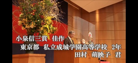 慶應義塾が主催する「小泉信三賞 全国高校生小論文コンテスト」において、高校2年田村萌映子さんの「命を見つめる緩和ケア」が見事佳作に選ばれました。