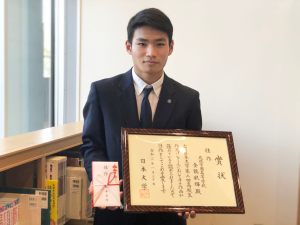 日本大学が主催する第2回高校生作文コンクールにおいて、高校2年金鶴航輝くんの「物事や人の本質まで見通す力」が佳作を受賞しました。