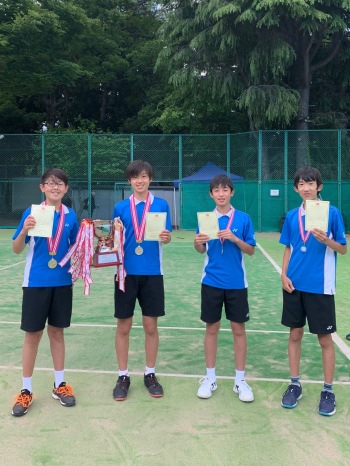 4月18日(日)~5月3日(月)に行われた世田谷区中学校体育連盟テニス部夏季大会において、中学校男子テニス部が優秀な成績を収めました。主な成績は以下の通りです。 〈シングルス〉 準優勝 小島 凛くん(中3) ベスト8 平野 寛治くん(中3) 〈ダブルス〉 優勝 小島 凛くん・平野 寛治くん ペア 5-6位 大塚 柚翔くん(中3)・加藤 至恩くん(中2)ペア 以上のメンバーが5月15日(土)から行われる都大会への出場を決めました。
