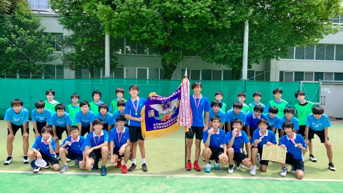 6月13日(日)と20日(日)に行われた世田谷区夏季総合体育大会団体戦において、中学校男子テニス部が8年連続(昨年はコロナで大会は開かれず7連覇)で優勝しました。 1、2回戦 シードのため試合なし 3回戦 成城学園 4-1 上祖師谷 準決勝 成城学園 3-2 筑波大駒場 決勝 成城学園 5-0 砧 また、7月に行われる都大会への出場を決めました。