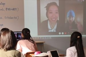 「コロナが終わったらお互いの国に行ってみたい」と話す生徒たち。実際の海外渡航が困難な状況下ですが、こうしたツールを活用して国際交流を活発に続けています。