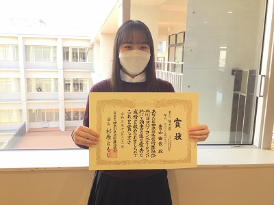 高校2年の青山由依さんが、11月19日に神奈川県立音楽堂で行われました『第35回ヨコハマ・コンペティション』で第6位入賞を果たしました。この大会は伝統ある大会で、モダン・コンテンポラリー2部門で、104人のエントリー中、第6位努力賞を受賞しました。今後の更なる活躍を期待しています。