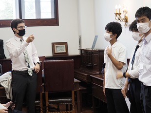 British Hillsは「パスポートのいらない英国」がキャッチフレーズの語学研修施設で、中世の英国が忠実に再現された空間で英国文化に触れることができます。道徳の授業で取り上げた「中学生と部活動」「日本の独特な習慣」「日本が世界に誇れる技術」などのテーマをヒントに、事前学習で英語でのプレゼンを4~5人のチームで構成し、現地ではプレゼンのスキルを英語で学びました。現地の先生方からは「成城学園の生徒はフレンドリーでコミュニケーション能力がある!」と褒めていただきました。「自分の英語が通じた!」「英語で言われたことがわかった!」という経験と自信がこれからの英語学習の励みになってくれればと思います。