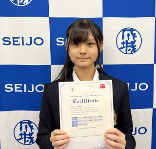 中学2年生 向山苺里さんが、日本英語検定協会主催 実用英語技能検定において見事1級に合格しました。