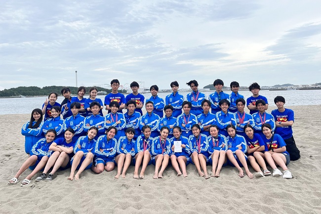5月27日(土)・28日(日)に神奈川県横浜市横浜海の公園で実施された全日本ジュニア・ユース・マスターズライフセービング選手権大会おいて、高等学校水泳部ライフセービング部門が高校の部で全国総合優勝となりました。この大会は、全国から約300名が出場した中高生の全国大会で各種目において素晴らしいレースを展開して、高校の部全国総合優勝を果たしました。