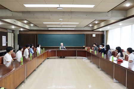 中学校高等学校は、アメリカのメリーランド州にあるマクダナ校と30年以上にわたり姉妹校として交流を続けており、これまでも留学生の受け入れと送り出しを続けてきました。今年3月21日から4月4日にかけての2週間、成城学園から高校生8名がマクダナ校を訪れ、コロナ禍で途絶えた交流が再開しました。6月5日(火)、留学に参加した高校生が戸部学園長のもとを訪れ、留学の報告を行いました。