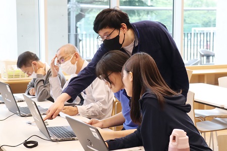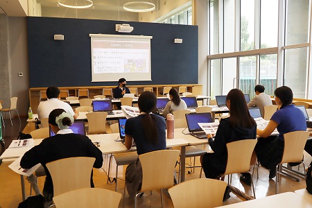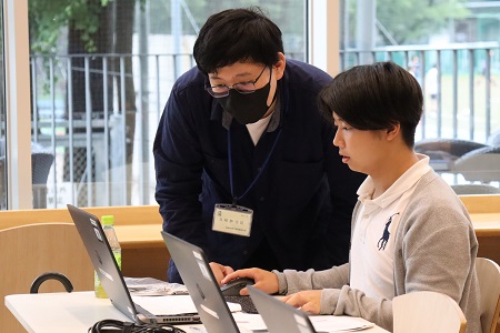6月9日(金)、中学校高等学校で「サイエンス教室」を開催しました。「サイエンス教室」は、専門の研究者による講義を拝聴したり、実験を観察したりしながら少し高度なサイエンスを学び、その体験を通じて中高生に理系の興味を喚起することを目的として年2~3回実施しています。今回のテーマは「PCでのPROGRAMMING」。中高校舎のカフェテリアを会場に、テーマに興味のある中高生と先生約10名が参加しました。今回のサイエンス教室は、PCエンジニアで現在マイクロテクニカ運営執行代表を務める吉田靖幸氏を講師にお招きし、プログラミングについて教えていただきました。