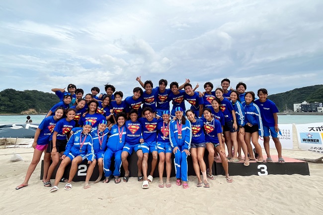 9月2日(土)・3日(日)に静岡県下田市外浦海岸で実施された、全日本ジュニア・ユース・マスターズライフセービング選手権大会高校の部において、高等学校水泳部ライフセービング部門の生徒たちが各種目で素晴らしいレースを展開して、多数の競技において入賞し、高校生の部全国総合準優勝しました。入賞者は以下のとおりです。