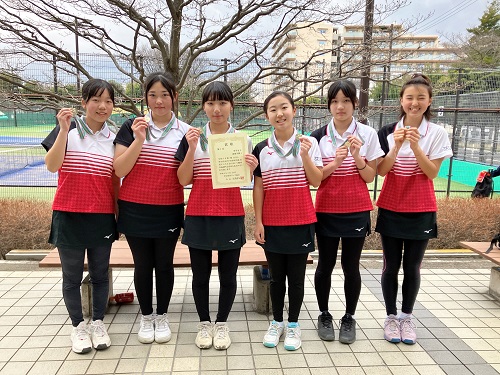 中学女子テニス部が3月27日(水)、28日(木)に世田谷総合運動場で行われた世田谷区中学団体対抗テニス大会において、優勝しました。今後行われる中体連主催大会でも活躍できるよう、練習に励んでいきます。