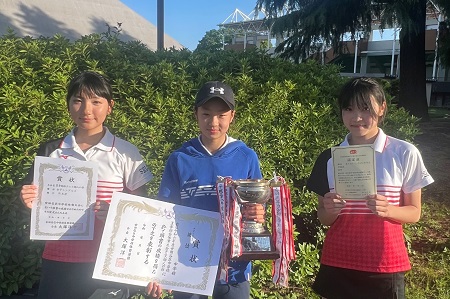 中学女子テニス部が4月21日から5月4日にかけて世田谷区立総合運動場他で行われた令和6年度世田谷区中学校体育連盟テニス部夏季総合体育大会個人の部において、下記のような優秀な成績を残しました。 〈シングルス〉 優勝 武藤叶奈さん(中1) また、シングルスでは、武藤叶奈さん、 森川桜子さん(中3)、大嶋美咲さん(中2)が東京都大会に出場することが決まりました。応援よろしくお願いします。